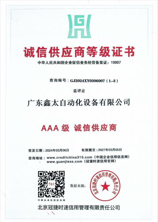 3A級(jí)誠(chéng)信供應(yīng)商等級(jí)證書(shū)